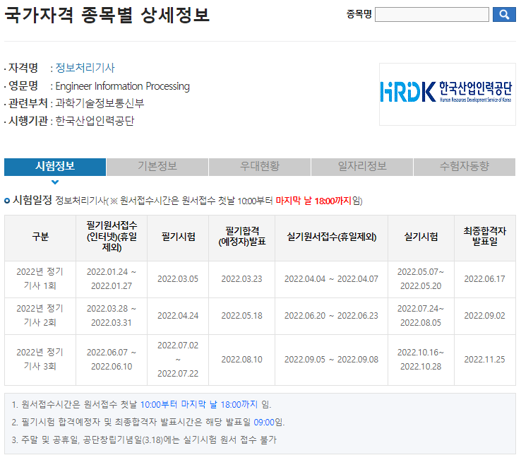 | [Issue] 2022년 정보처리산업기사 시험일정 (0) | 2022.03.06 |